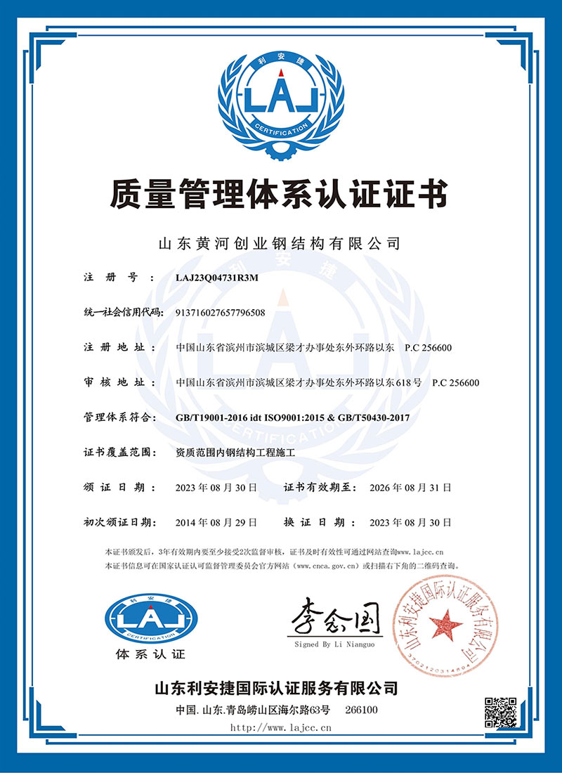 山東黃河創(chuàng)業(yè)鋼結(jié)構(gòu)有限公司創(chuàng)建于2004年, 2008年成為鋼結(jié)構(gòu)專業(yè)承包制作和安裝壹級(jí)企業(yè),施工總承包貳級(jí)資質(zhì),通過了ISO9001質(zhì)量體系認(rèn)證。公司占地面積20萬平方米,年生產(chǎn)能力20萬余噸,有多條輕鋼生產(chǎn)線,重鋼生產(chǎn)線、箱型鋼生產(chǎn)線、管桁架生產(chǎn)線,多臺(tái)先進(jìn)的高速激光設(shè)備,另外還有電力、通訊塔、大型裝備配套生產(chǎn)線。現(xiàn)企業(yè)注冊(cè)資金5000萬元,有固定資產(chǎn)2.5億元。各類工程、技術(shù)人員300余人,高級(jí)職稱15人,中級(jí)職稱45人,初級(jí)100人。同時(shí)公司擁有合格上崗技術(shù)人員200人。公司主要設(shè)計(jì)、生產(chǎn)、制作及安裝各種裝配式結(jié)構(gòu),廣泛用于各類工業(yè)大跨度、超高門式鋼架廠房,多高層建筑,電力、通訊塔、橋梁、大型裝備等重鋼領(lǐng)域與民用建筑領(lǐng)域,是黃河以北主要鋼結(jié)構(gòu)生產(chǎn)、安裝基地之一。
